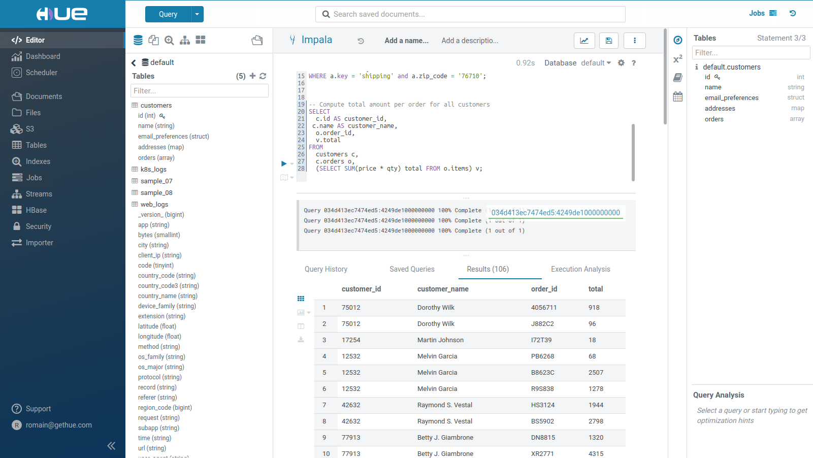 Hue 는 일반적인 데이터베이스 및 데이터 웨어하우스에 대한 SQL 인터페이스를 제공하는 웹 기반의 사용자 인터페이스입니다. 데이터 웨어하우스에는 Hadoop 기반의 웨어하우스도 포함됩니다. Cloudera CDH 배포판에는 초기 버전부터 포함되어왔으며, Amazon AWS 와 Open Data Hub 등 에도 배포되고 있습니다.
