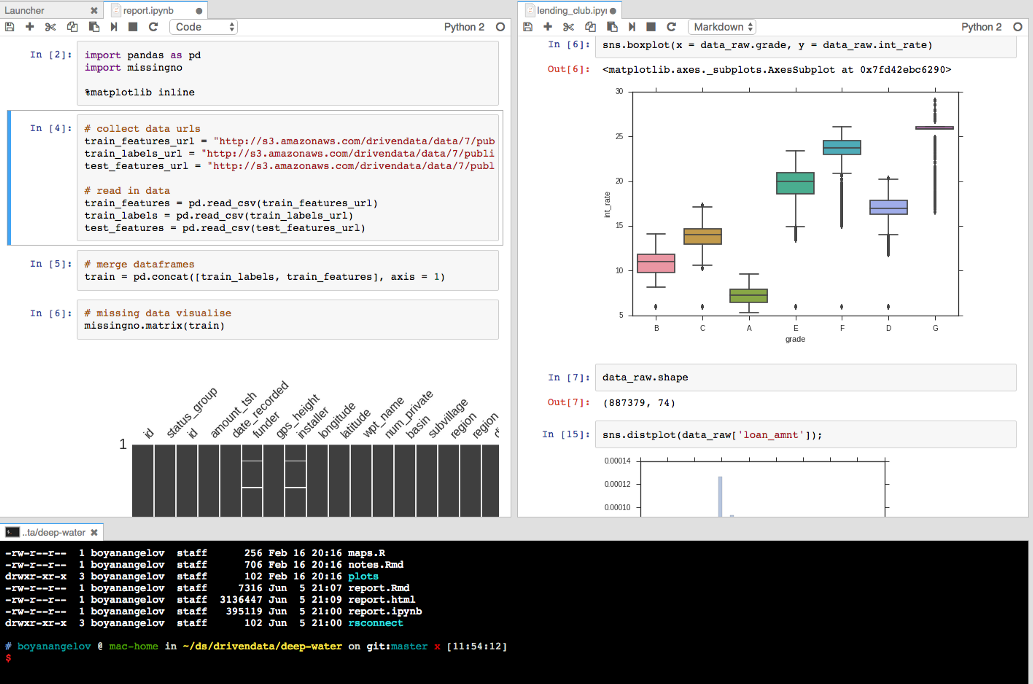 주 작업 영역에서는 노트북이나 터미널을 실행하여 대화형으로 작업을 할 수 있습니다. 또, 시각화된 결과도 볼 수 있습니다.